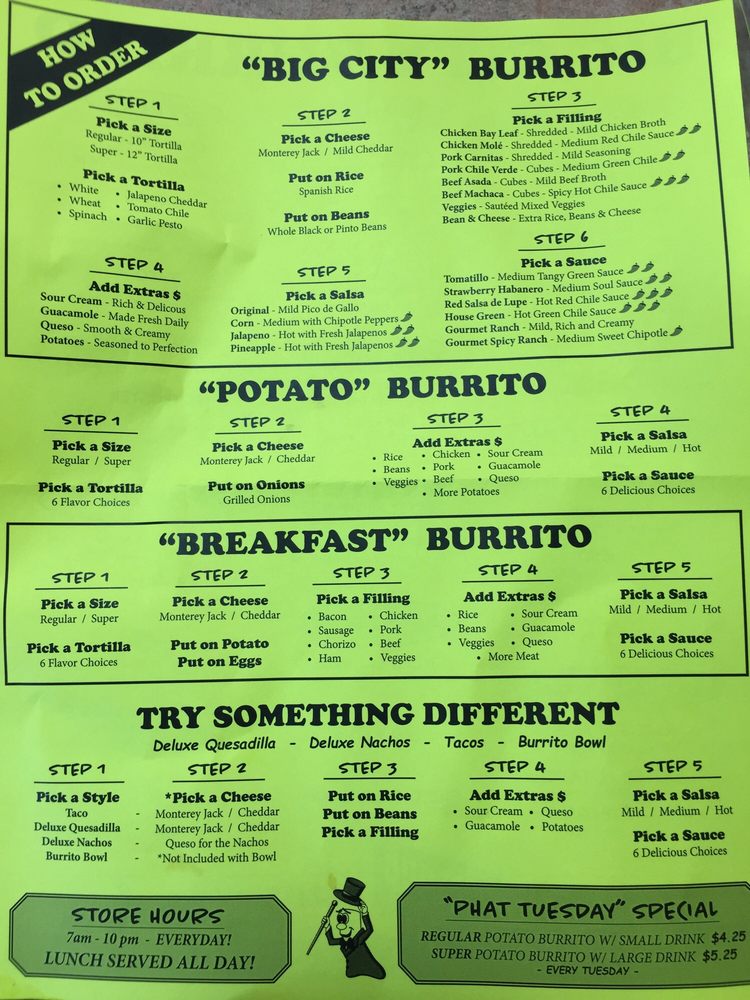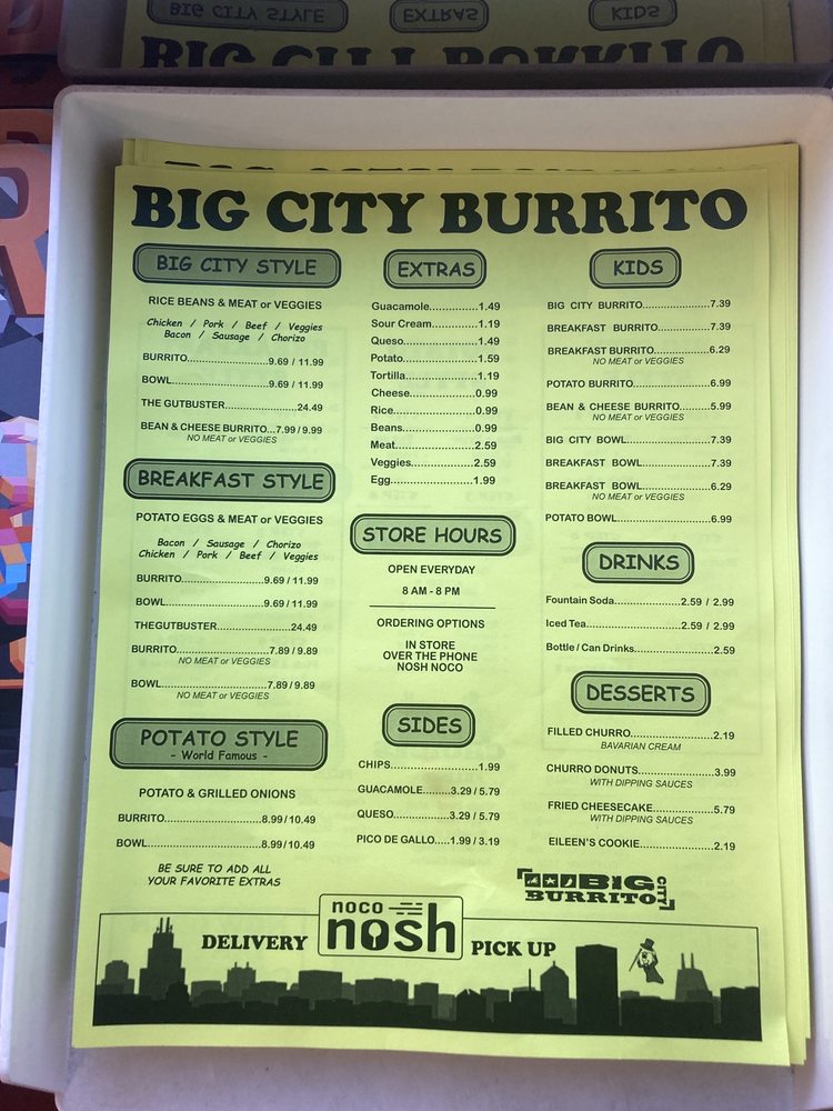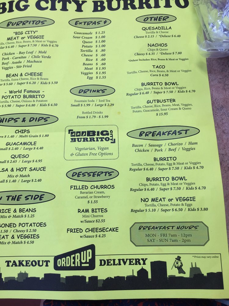 Big City Burrito Menu (2025 Update)